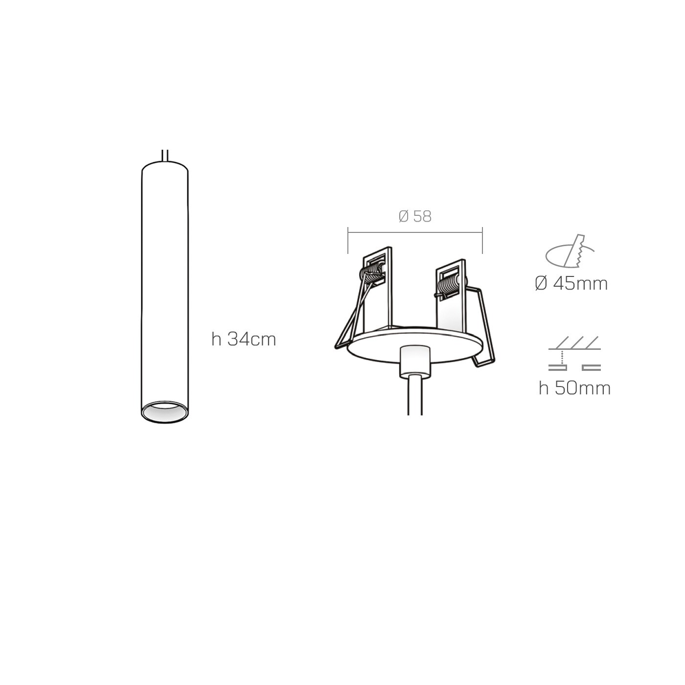 Installation details: Ø 5.8 cm / hole Ø 4.5 cm - h 5 cm