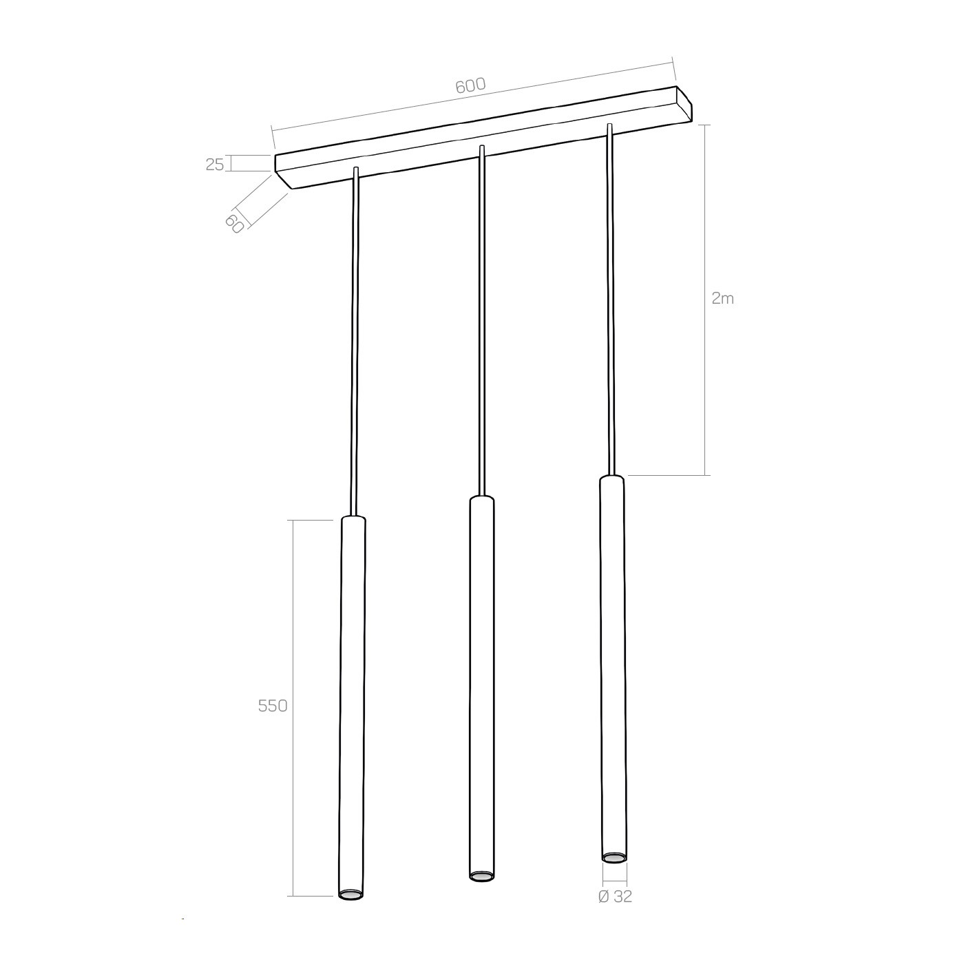 Dimensions: 2m h cable